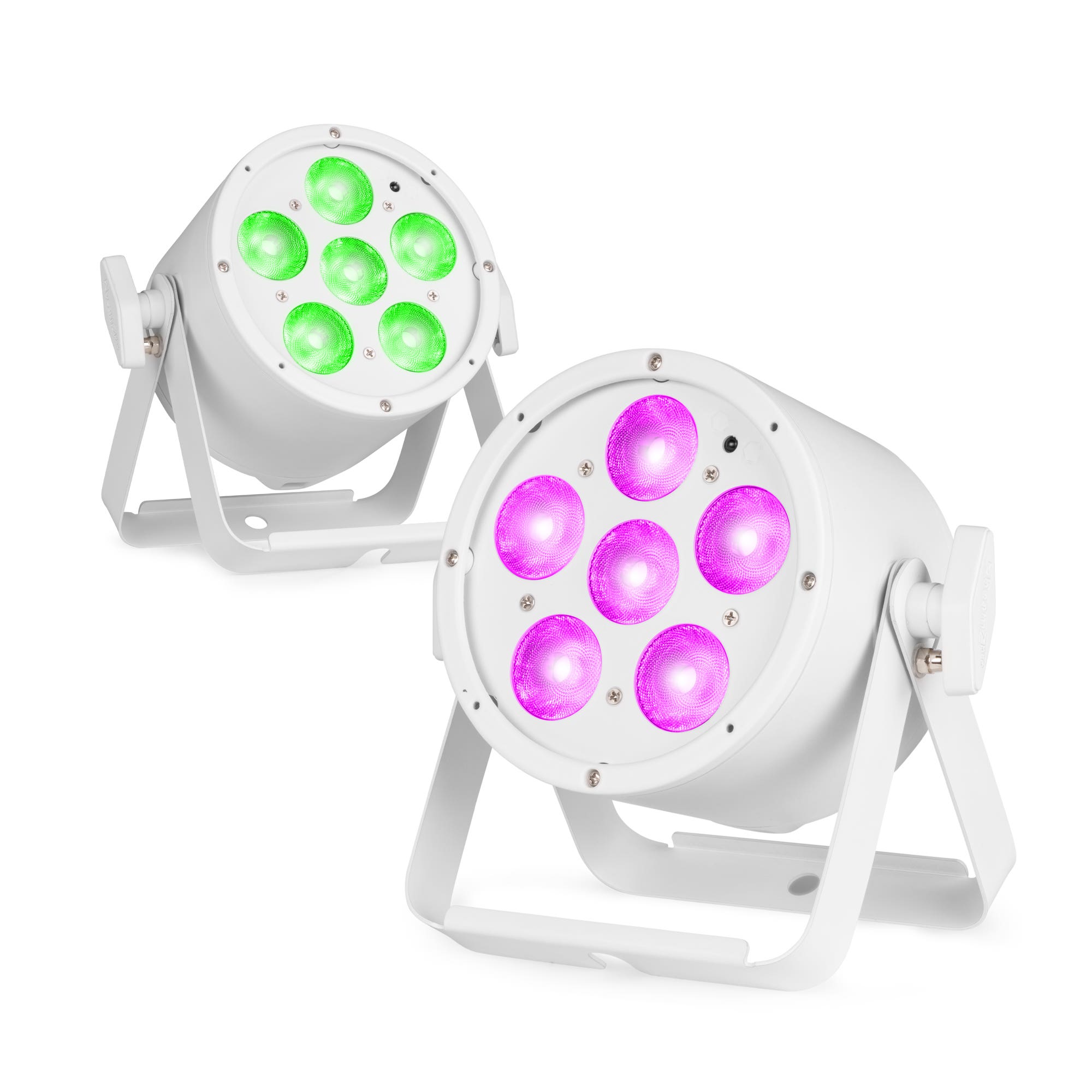 De aluminium behuizing zorgt voor efficiënte koeling zonder ventilator. Hierdoor werkt elke LED par fluisterstil en is deze ideaal voor situaties waar rust belangrijk is. De stevige constructie maakt deze LED par set geschikt voor intensief gebruik.
